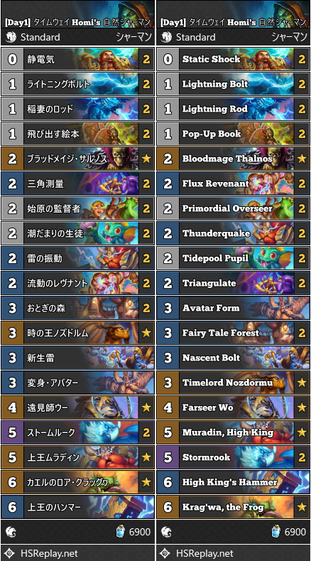 [Day1] タイムウェイ Homi’s 自然シャーマン 2025年11月5日 bandzero Deck - デッキ デッキ概要 Homiが使用した自然シャーマン。 流動のレヴナントやストームルークなど味方ミニオンに自然呪文でダメージを与えて戦うデッキ。特に流動のレヴナントは序盤から大型サイズまで成長できるので強力です。 他にはミニオンとしても武器としても強力な上王ムラディンや、デッキ外から自然呪文を発見する遠見師ウー、新カードが豊富な構成を活かす時の王ノズドルムなども採用されています。 デッキ デッキコード Copy ソース 関連記事 Nature Shaman, Shaman, シャーマン, 自然シャーマン