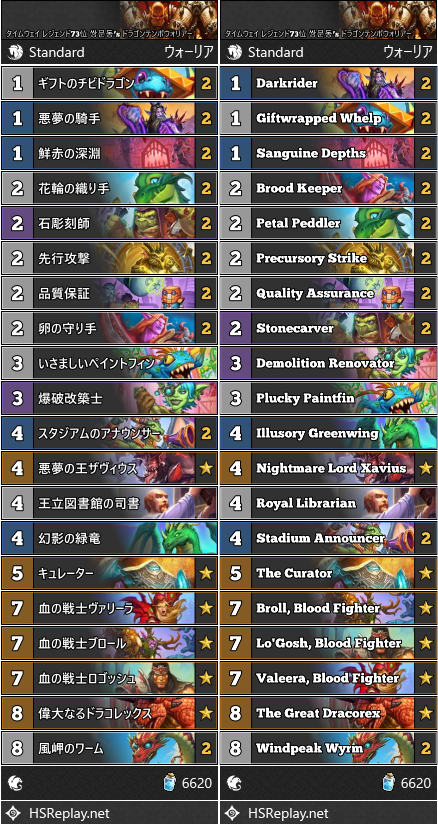 ドラゴンなどのミニオンと血の戦士ロゴッシュで戦うデッキ。ドラゴン以外にもいさましいペイントフィンや偉大なるドラコレックスなどの種族持ちミニオンを採用し、キュレーターでドローできるようにしています。