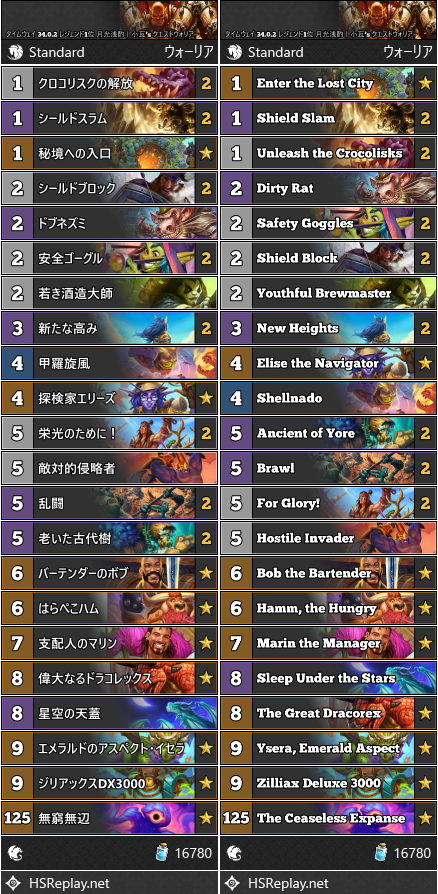 パッチ34.0.2で弱体化された老いた古代樹はそのまま採用した構成で、様々なカードを再利用できる若き酒造大師を1枚採用裂いています。