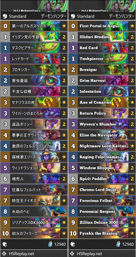 McBanterFaceがラストチャンス大会TOP8に使用した売人デーモンハンター。