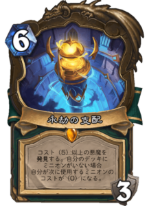 独居などで獲得した手札のミニオン全体を遺思の継承で強化したり、永劫の支配で獲得した高コストミニオンをコスト(0)で展開できるのが強力です。戦績は26勝7敗(勝率79%)とのこと。