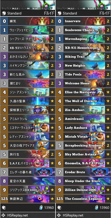 タイムウェイ 34.2.2 レジェンド96位 Kubu’s 装甲場所ドルイド