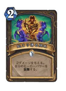 ローグの鼓舞ヒーローパワーブロンズの祝福を使って戦うデッキ。ミニセットで追加された起こり得る結末時間の烈剣だけでなく、既存カードのビターブルーム・ナイト影隠れで何度も鼓舞を進めることができます。