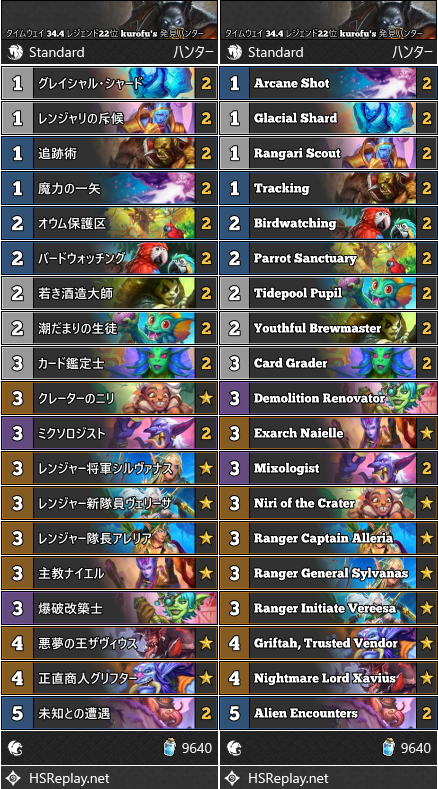 主教ナイエルによるヒーローパワーや様々な発見を使って戦うデッキ。クレーターのニリにより、ミクソロジストのポーションや正直商人グリフターのアミュレットなどを2回発動させることができます。